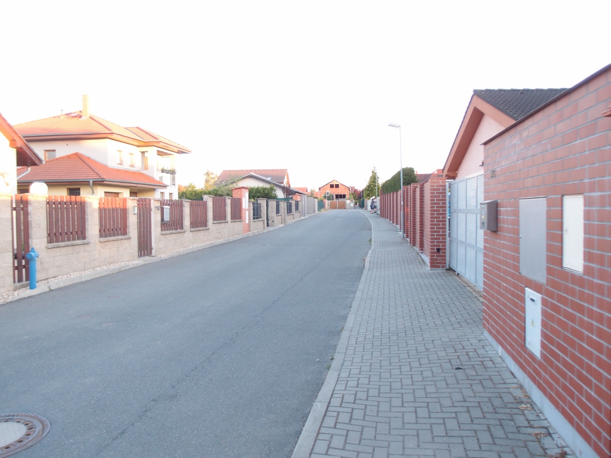 Pohled na ulici Jabloňová, kde zeleň ve veřejném prostranství nedostala šanci.